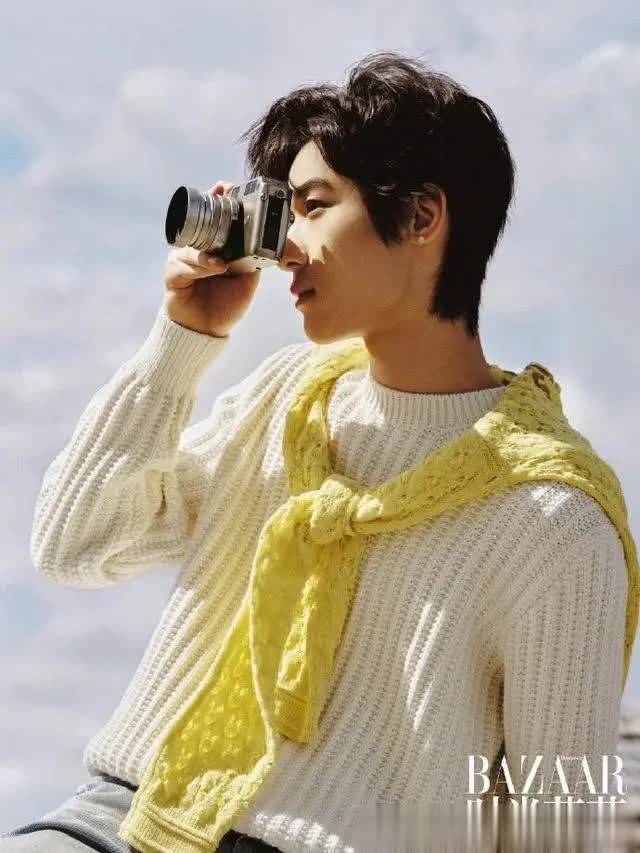 最动人之处在于他的表现力。镜头里的他或低头摆弄相机,或仰头望向天空,眼神里的清澈和松弛,让每一套造型都有了故事感——比如近景特写里,发丝落在眉眼间的慵懒;屋顶上的侧颜,阳光勾勒出柔和的下颌线。粉丝说“这就是我想象中17岁少年的样子”,确实,他的少年感并非刻意装嫩,而是刻在神态里的鲜活,与春夏系列的清爽调性完美契合。